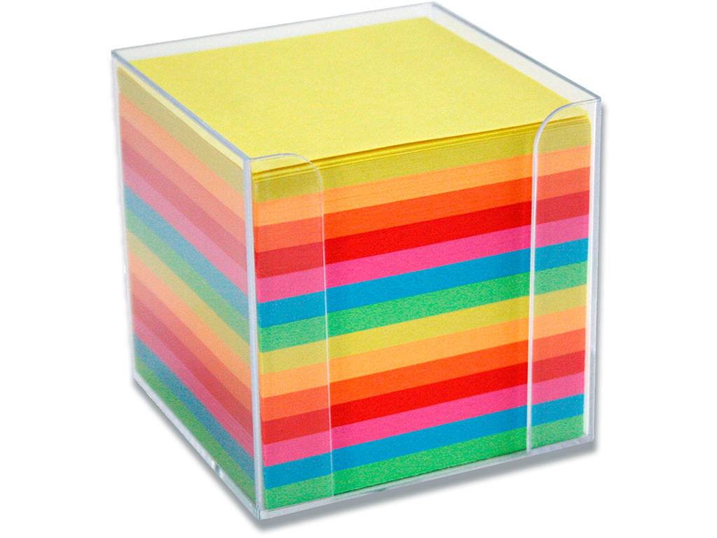 Kubusblok holder, Plast - Assorteret farvet papir, 700 ark, Transparent, Folia