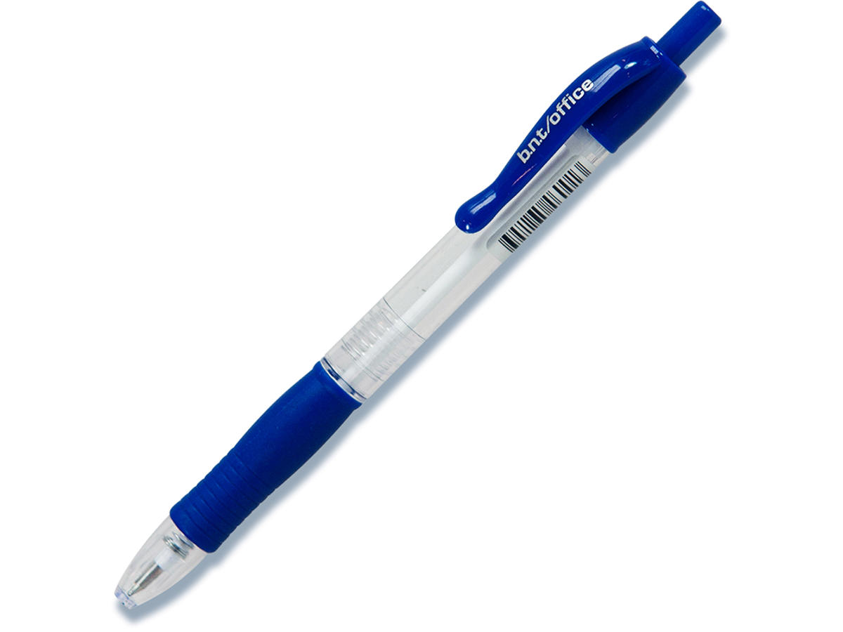 En uundværlig klassiker! En kuglepen med trykmekanisme og et godt greb, der er behagelig at skrive med og holder længe. Gennemsigtig for at kunne aflæse blækstand og med farvede clips og gummigreb.