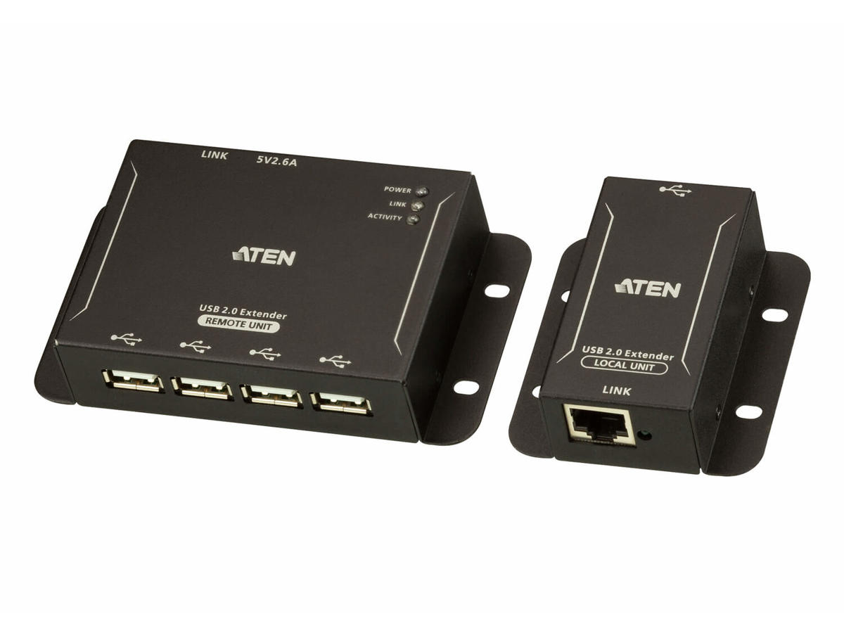The UCE3250 4-port USB 2.0 Cat 5 Extender is a two-unit device that serves as a USB hub and a USB extender. The UCE3250 unit can connect as many as 4 USB peripherals from up to 50 meters away from your computer over a Cat 5 / 5e / 6 Ethernet cable.