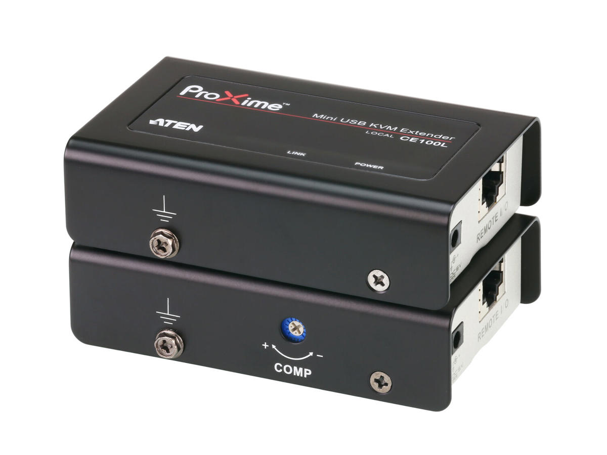 The CE100 USB KVM Extender with superior video quality and built-in ESD protection allows access to a computer system from a remote USB console (USB keyboard, USB mouse, and monitor).
