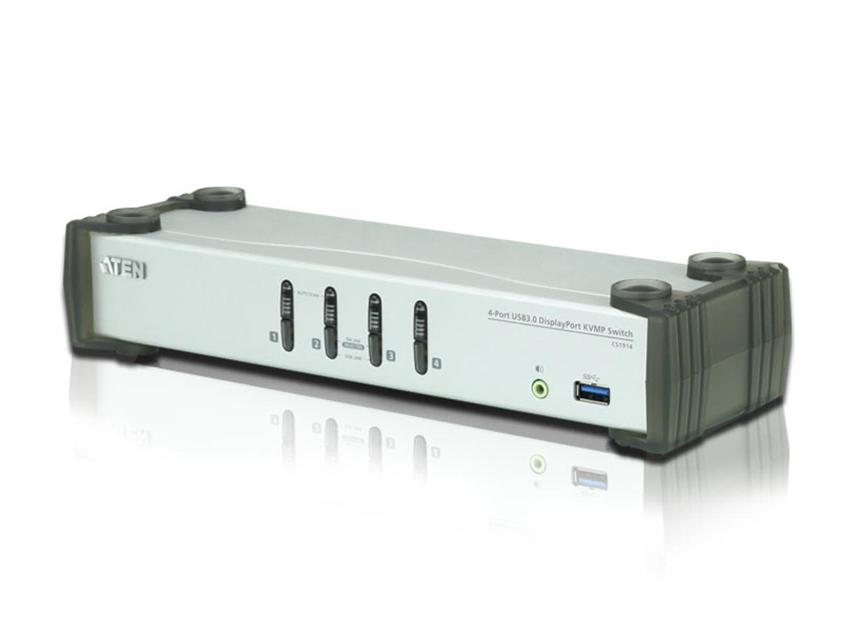 The ATEN CS1914 4-Port USB 3.0 DisplayPort KVMP™ Switch provides the latest innovations in desktop KVM switching technology to meet the increasing demand of higher video quality and file transfer rates on modern computers. The CS1914 provides superior resolutions up to 3840 x 2160 @ 30 Hz, a SuperSpeed USB 3.1 Gen 1 hub with 5 Gbps transfer rates and enhanced user-friendly operations.