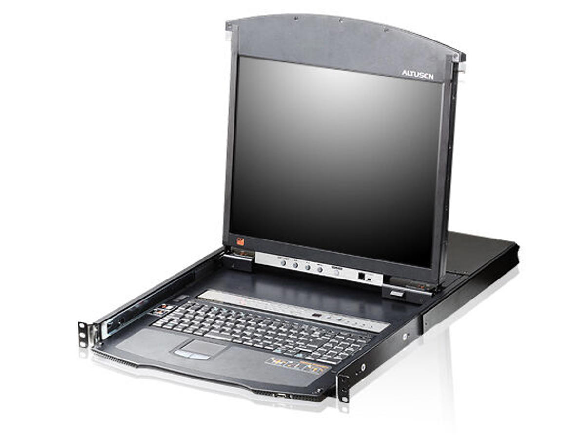 The KL1516Ai Dual Rail LCD KVM Switch is a control unit that allows secure access up to 16 computers from a single KVM (keyboard, video, and mouse) console. It consists of an integrated LCD monitor, keyboard, and touchpad in a 1U rack-mountable retractable sliding housing.