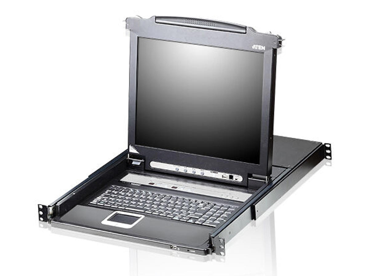 The CL5716 offers a space-saving, streamlined approach to KVM switch technology by integrating a keyboard, 17" or 19" LED-backlit LCD monitor, and touchpad in a 1U rack-mountable sliding housing. -