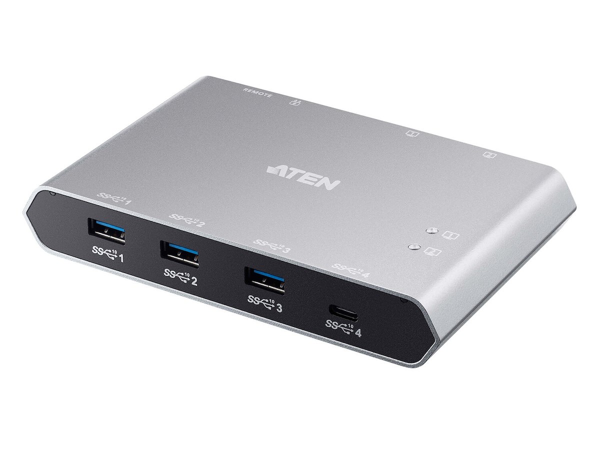 ATEN US3342 is a 4-port USB 3.2 Gen 2 peripheral sharing device that allows users to share data between four USB devices in two different USB-C enabled laptops. The US3342 is USB 3.2 Gen 2 compliant, which can support data transfer rate up to 10Gps, and also compatible with USB 3.1 Gen 1, USB 2.0 and USB1.1.