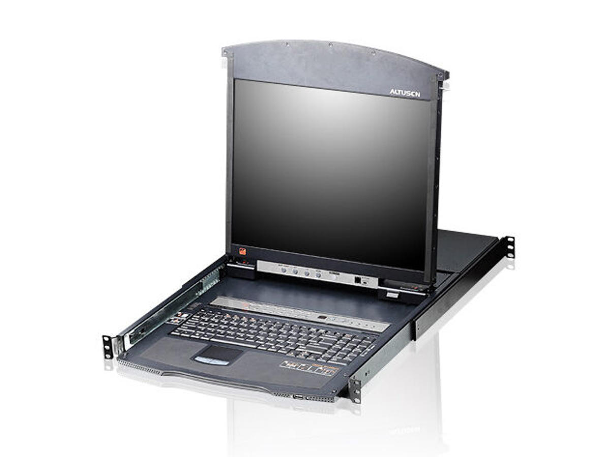 ALTUSEN KL1508A LCD KVM Switch features independently retractable, dual slide 17" or 19" LED-backlit LCD monitor and keyboard with built-in touchpad. The KL1508A KVM switches are control units that allow IT administrators to access and control multiple computers from the LCD console and an extra PS/2 or USB KVM console.