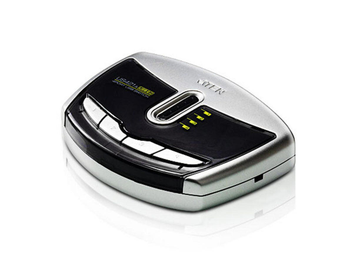 The US421A is a 4-port USB 2.0 Peripheral Switch that allows up to 4 computers to share the use of a single USB peripheral device (such as a printer, scanner, mass storage drive, etc.) on a one-at-a-time basis.