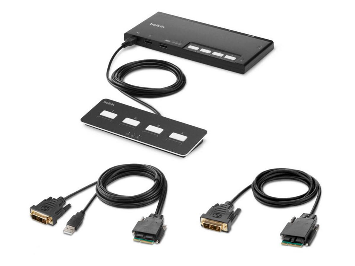 - Small footprint for 4 port, single monitor DVI KVM