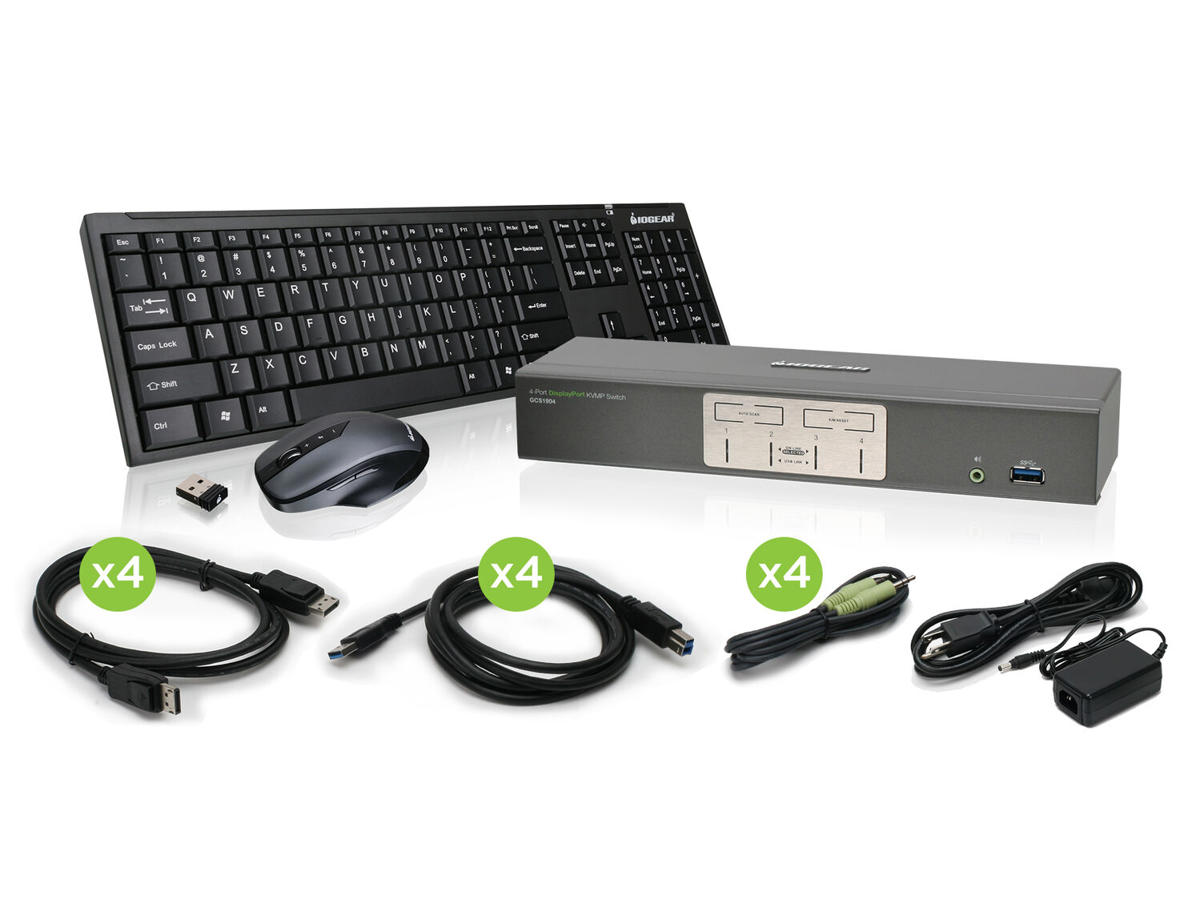 IOGEAR's 4-Port 4K UHD DisplayPort KVMP bundle comes complete with a set of IOGEAR's state-of-the-art wireless keyboard and mouse. Streamline your 4K setup with this computer switch, IOGEAR's low-profile keyboard and touch sensor mouse. With a combination of 4K UHD resolution support, the next generation USB3.0 hub, and enhanced user-friendly operation, IOGEAR's DisplayPort KVMP Bundle provides the latest innovations in DisplayPort KVM technology and convenience in desktop setup. Your most affordable computer switching connectivity solution is ready for setup straight out-of-the-box!