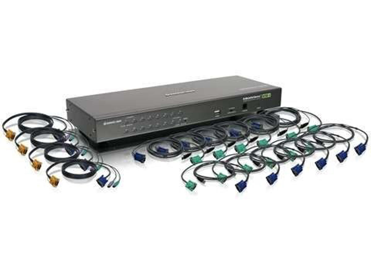 The GCS1716 KVM is a combo switch allowing access and control of up to 256 computers from a single console (keyboard, mouse, and monitor). As many as 16 additional switches can be cascaded bringing the total number of connected computers to 256 computers that can be controlled from a single keyboard-monitor-mouse console. A custom ASIC (patent pending) provides an auto-sensing function that recognizes the position of each station on the installation, eliminating the need to manually set the position with DIP switches. Additionally, the GCS1716 features high density SPHD 15-pin instead of the usual 25-pin connectors thus allowing for a compact design and installation in a 1U system rack.