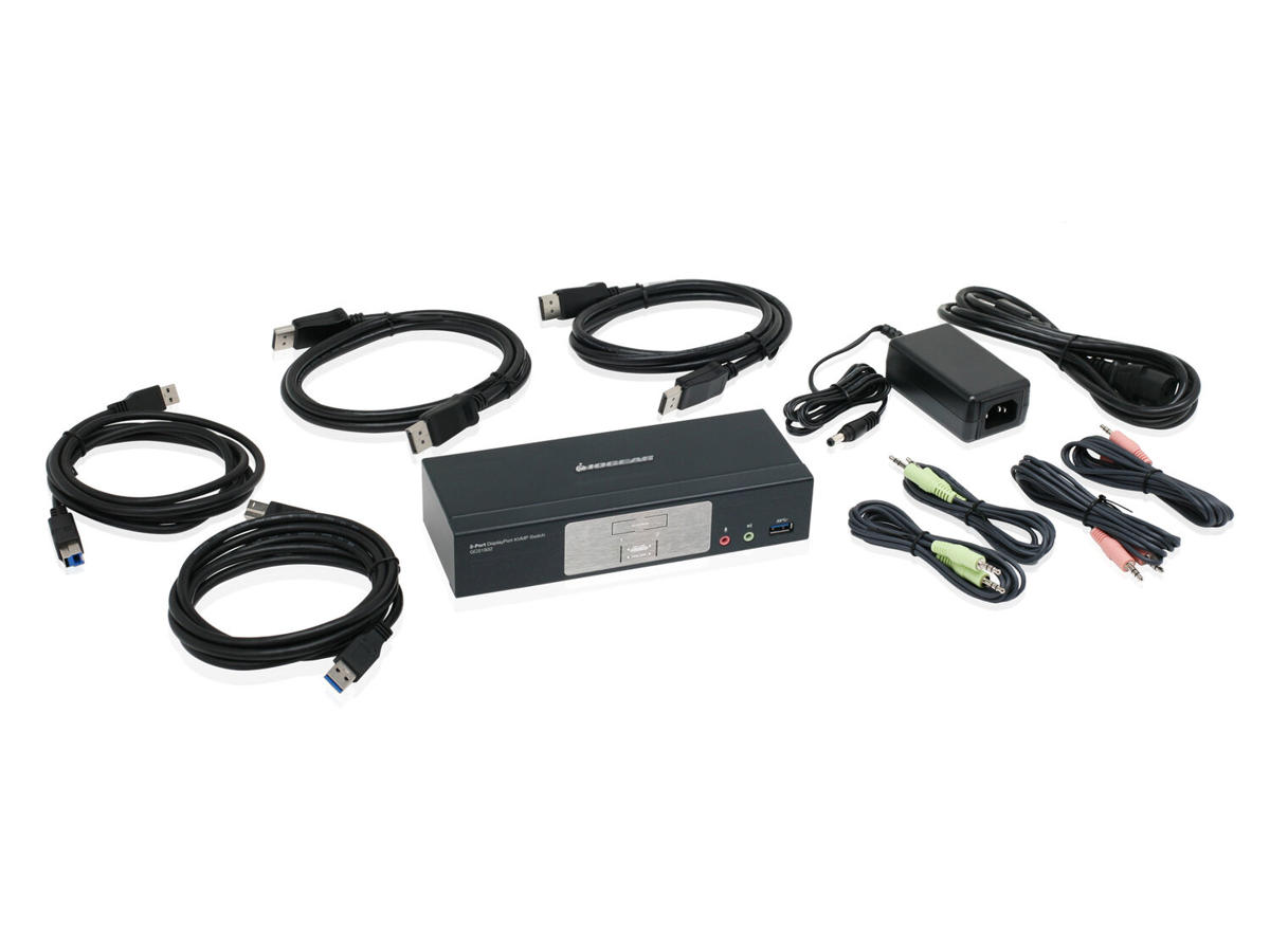 Featuring a revolutionary combination of 4K DCI resolution, the next generation USB3.1 hub, and enhanced user-friendly operation, IOGEAR's 2-Port DisplayPort1.2 KVMP Switch provides the latest innovations in DisplayPort KVM technology. Connect your powerhouse computers and experience True 4K resolution while switching between the two computers and sharing two USB peripherals with the push of a button. The 2-Port DisplayPort 1.2 KVMP Switch combines the functionality of a KVM switch with a DisplayPort 1.2 digital interface, built-in USB 3.1 Gen 1 hub, and audio. Control two DisplayPort computers with ease using a single keyboard, mouse, and DisplayPort monitor. Expand your USB 3.0 peripherals connectivity with faster data transfer rate and eliminate redundant hardware. -