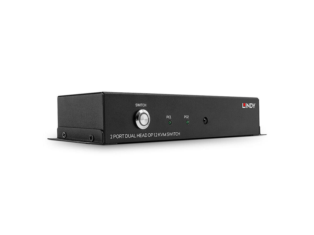 The Lindy 2 Port Dual Head DP 1.2 KVM Switch is a powerful, compact solution for providing access and control over two dual head, DisplayPort equipped PCs using a single set of peripherals and displays. Four USB 2.0 ports allow for the connection and sharing of USB peripherals and storage devices between host PC's seamlessly.