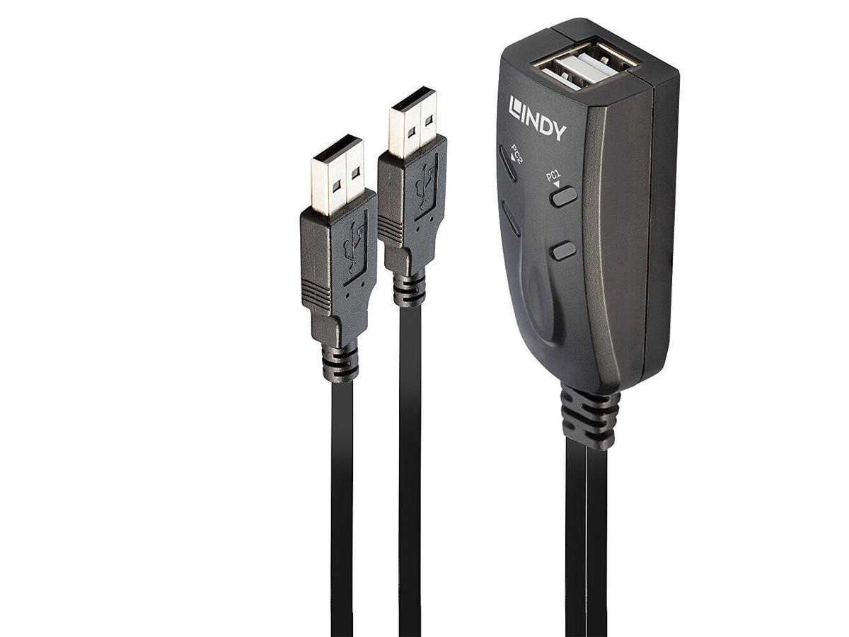 The Lindy 2 Port USB Keyboard and Mouse Switch allows users to control two computers with independent displays from a single Keyboard and Mouse.