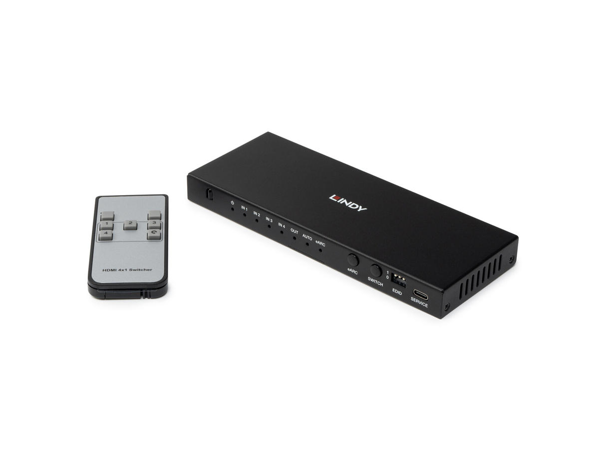 The Lindy 4 Port HDMI® 8K Switch with eARC is a professional solution for providing simple yet reliable switching control over 4 HDMI® source devices connected to a single HDMI® display, while also expanding a displays HDMI® port connections. Supporting HDMI® 2.1 48G signals, this switch allows for the transmission of detailed 8K resolutions, while additional support for High-Dynamic Range ensures video content can be seen with enhanced brightness, greater contrasts and a much wider colour gamut, perfect for a premium home cinema experience, eye-catching digital signage in retail settings or engaging presentations. HDCP 2.3 support ensures there are no issues with a variety of 8K content when connected to source devices including set top boxes, Blu-Ray players and 8K HDR media players.