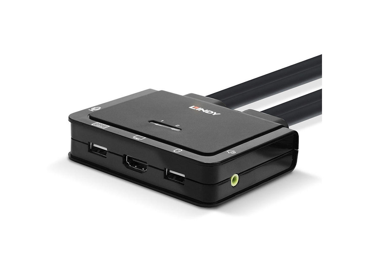 The Lindy 2 Port HDMI 18G, USB Type C, USB 2.0 and Audio KVM Switch is a compact solution for providing access and control over a HDMI equipped PC and Type C laptop or Desktop OS tablets from a single keyboard, mouse and monitor. With integrated cables, this switch can be easily connected directly to the system, with no need to purchase additional cables and to save time during installation.