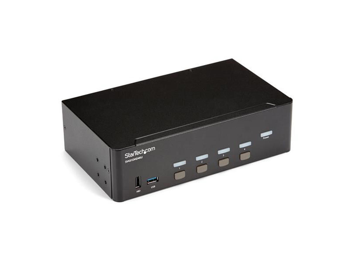This 4-port HDMI KVM switch lets you control four HDMI computers with a single mouse, keyboard and monitor up to 4K 30Hz. The KVM also features 3.5 mm audio and a built-in 2-port USB 3.0 hub.