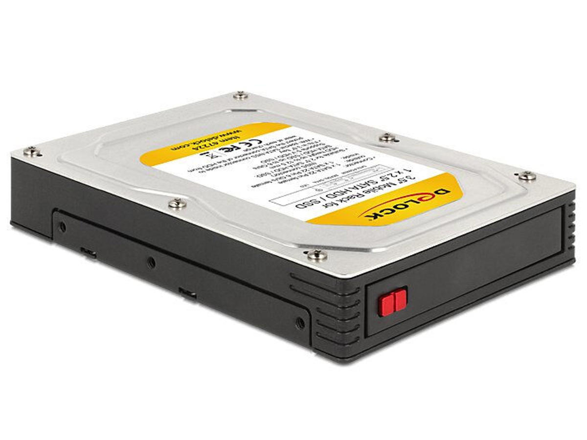 This Delock Mobile Rack is designed for external or internal connection of a 2.5″ SATA HDD. Insert the HDD directly into the frame and connect it either externally to a Power Over eSATA port with the help of an optional cable, or internally to SATA. The dimension of the frame complies to a standard 3.5″ HDD. Thus you can install the frame into a 3.5″ slot as well as into a 5.25″ mobile rack.