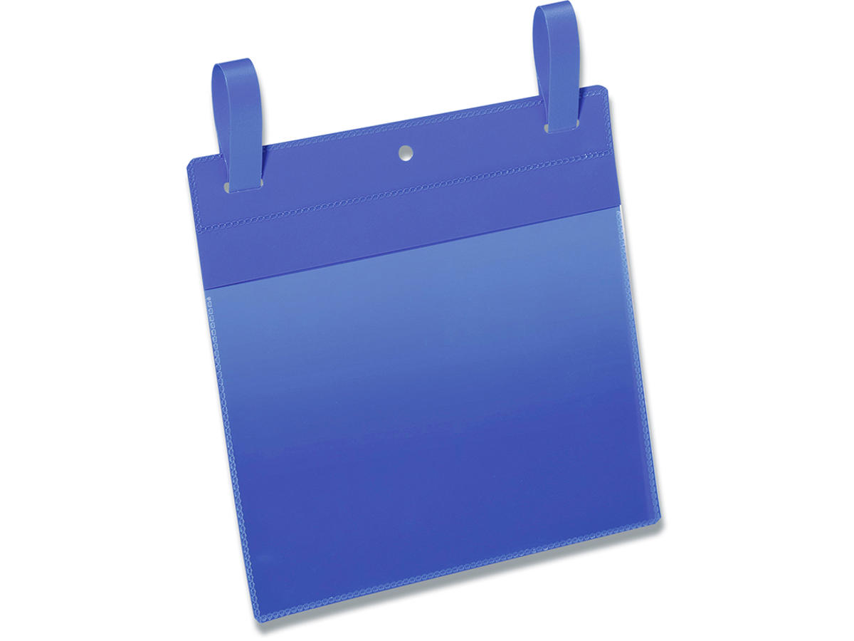 Lagerlomme med pile formede stropper, der fastgøres gennem slidsen i lommen. Ideel til permanent brug på lageret. Farvet bagside og gennemsigtigt vindue lavet af heavy-duty polypropylen. Velegnet til udendørs brug takket være åbning med en beskyttende foldefane i toppen der beskytter dokumenter fra støv og fugt. Rivefast og velegnet til scannere. Indhold kan udskiftes hurtigt. Indvendige mål: A5 tvær (B x H) Udvendige mål: 223x380 mm (B x H) Gratis skabeloner til etiketter - Klik her