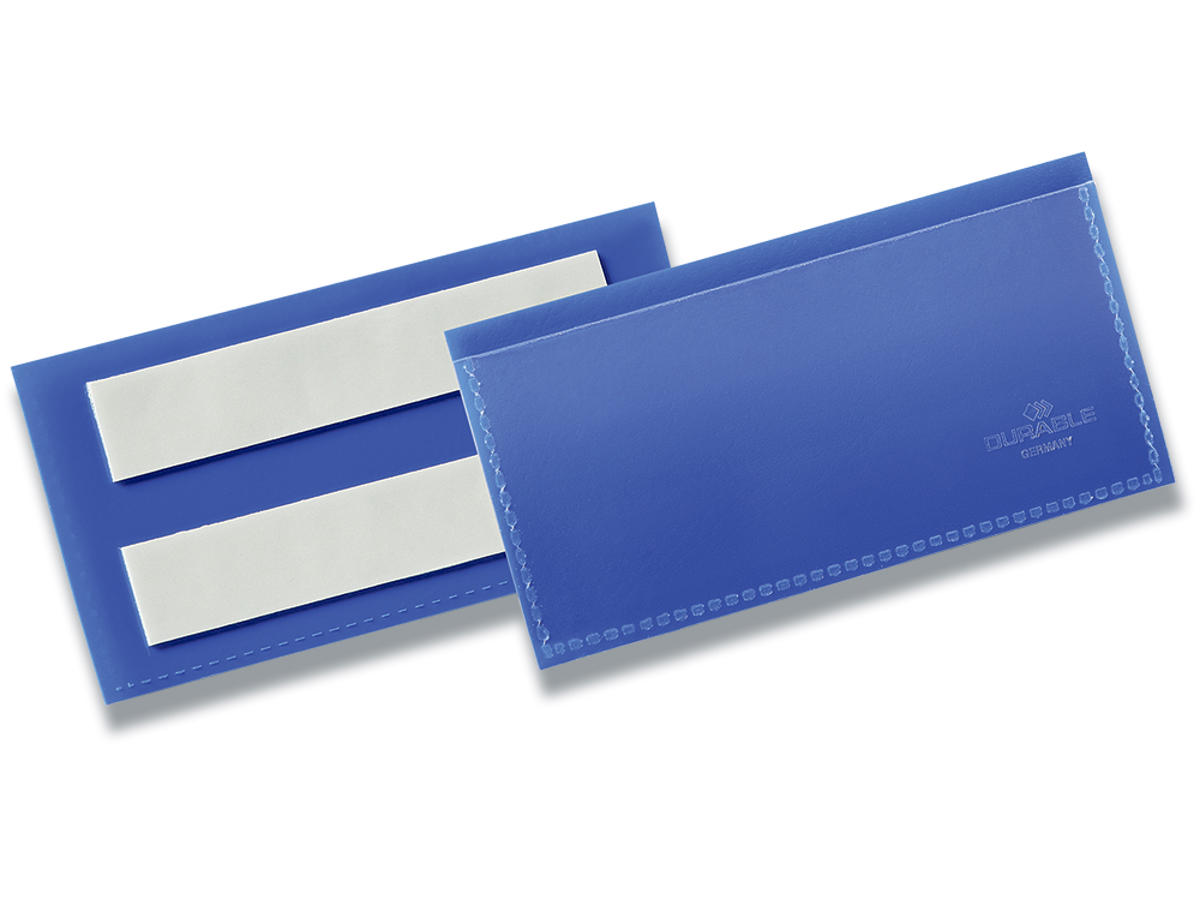 Lagerlomme /etiketholder med farvet bagside med selvklæbende strips og gennemsigtigt vindue lavet af heavy-duty polypropylen. Brug på alle overflader, såsom metal, karton og plast. Rivefast og velegnet til scannere. Indhold kan udskiftes hurtigt. Indvendige mål: 100 x 38 mm (B x H) Udvendige mål: 113 x 53 mm (B x H) Gratis skabeloner til etiketter - Klik her