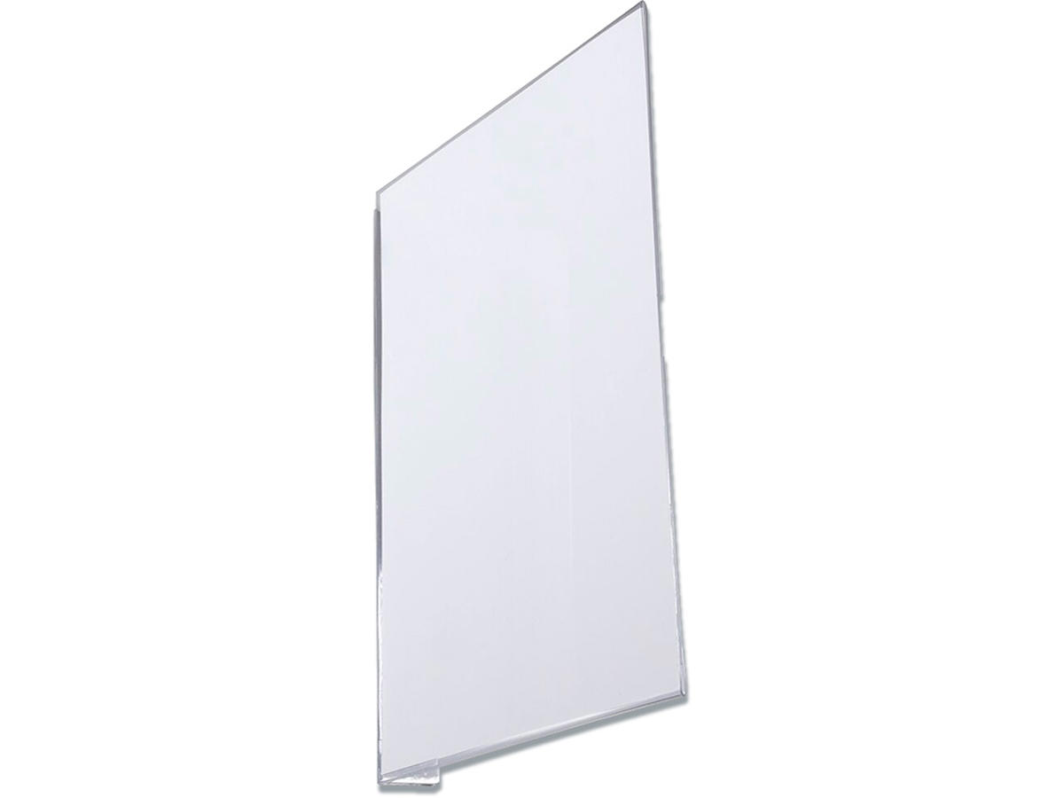 Klare og synlige gangskilte til mærkning af lagergange, pallereoler, lagerkontorer, toiletter osv. gør det nemmere at finde rundt på lageret eller i produktionen. Dette robuste PET-plastskilt beskytter indlægget mod støv. Indlægget kan laves ved hjælp af skabeloner, der er tilgængelige i det gratis Duraprint-værktøj, og er nemt at udskifte takket være et udskåret tommelfingergreb på bagsiden. Skiltet er retvinklet, så det er synligt fra begge sider. Påsættes nemt - uden værktøj - med en permanent selvklæbende strimmel (3 cm bred), som kan fjernes uden at efterlade rester, hvis skiltet tages ned. Til indstik i A5-størrelse stående format (210x148,5 mm). Ydre mål: 154x214x33 (BxHXD)