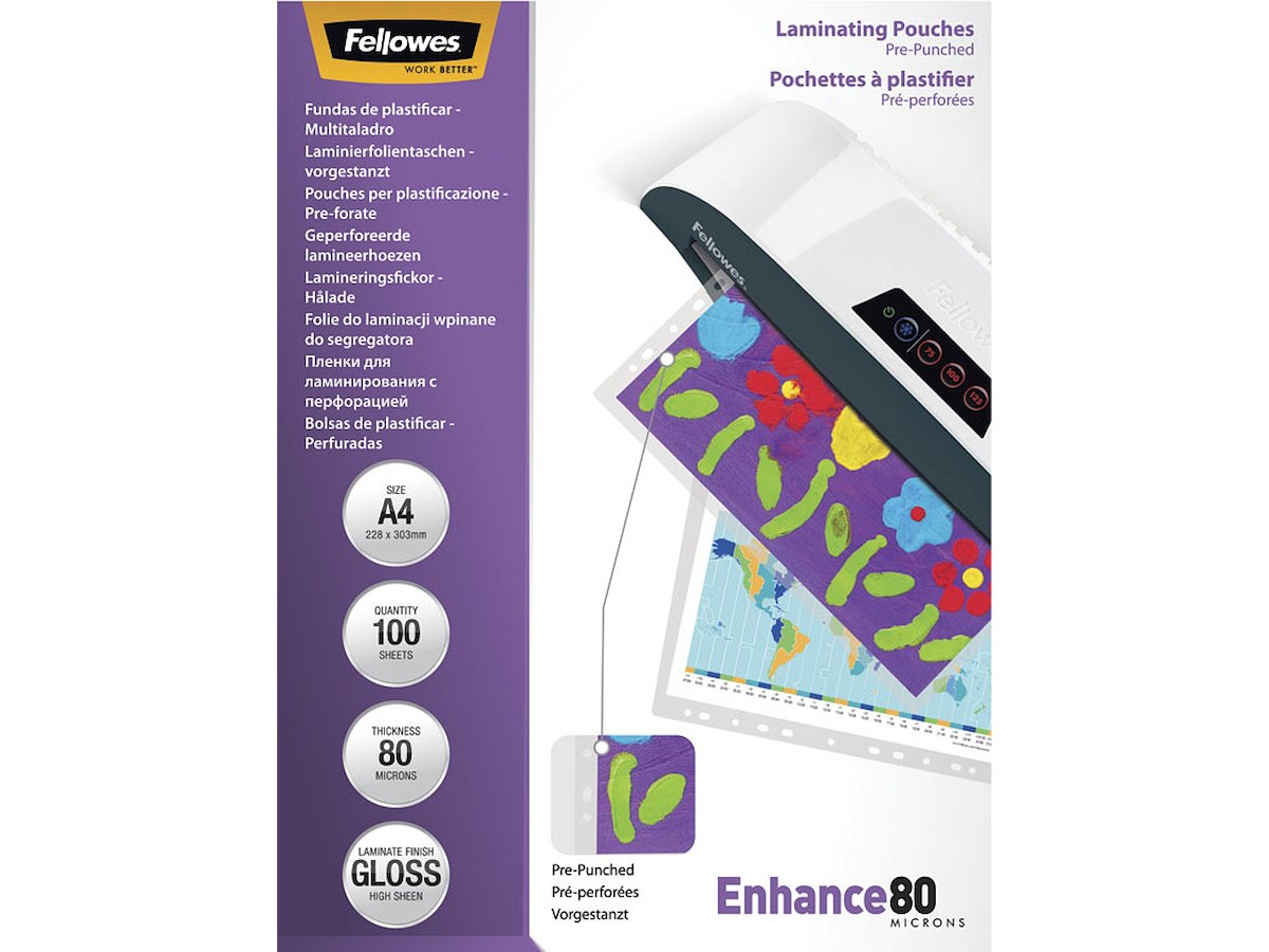 Lamineringslommer, 228x303 mm, 80 micron, 100 stk, Fellowes Filex 4 huller