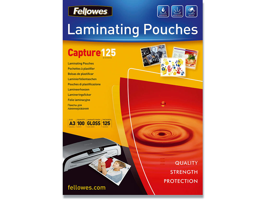 Lamineringslommer, A3, 125 micron, 100 stk, Fellowes Gloss