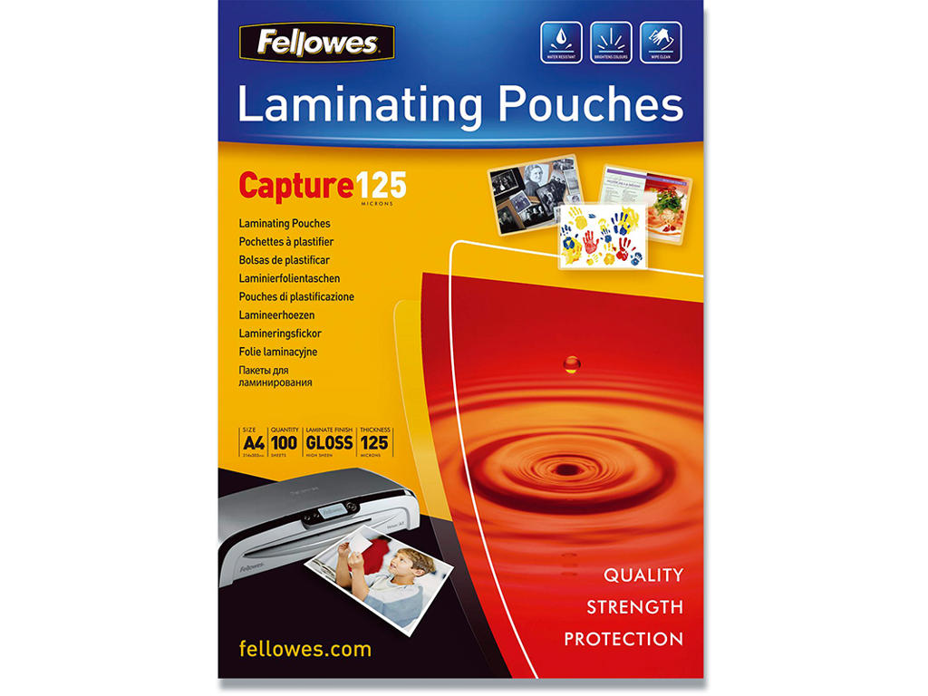 Lamineringslommer, A4, 125 micron, 100 stk, Fellowes Gloss