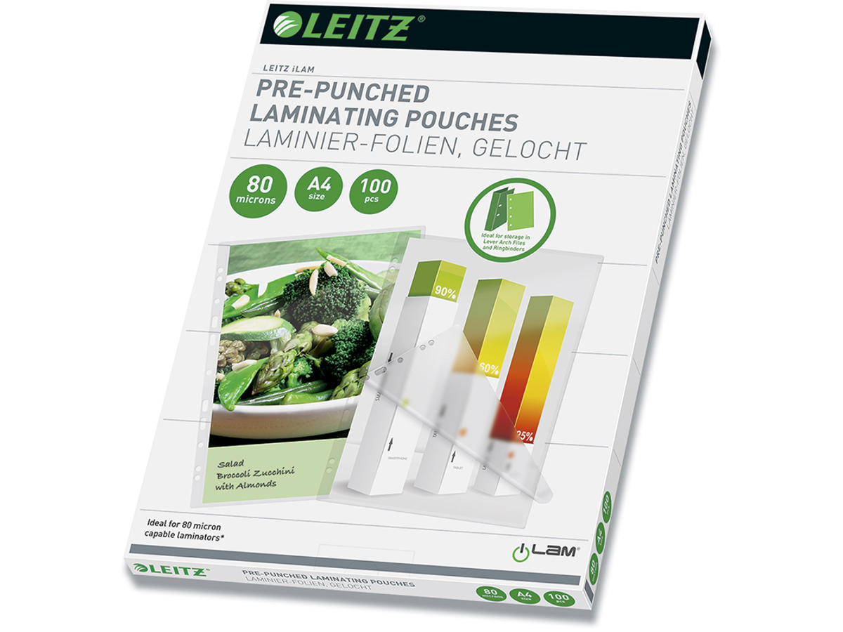 Lamineringslom. Leitz forhullet A4 80my