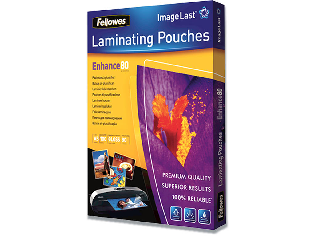 Lamineringslommer, A5, 80 micron, 100 stk, Fellowes Gloss