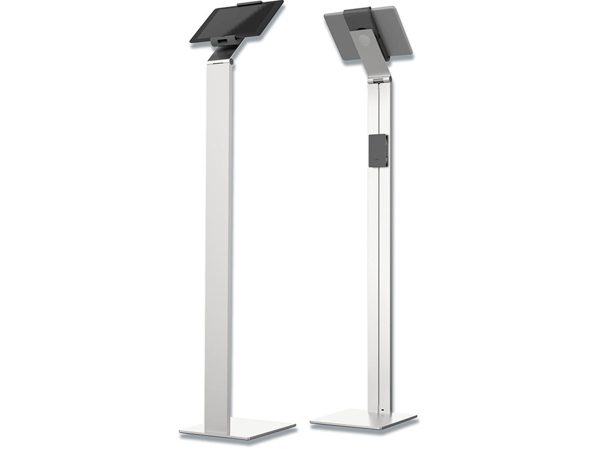 Tidsløs gulvstander med holder til tablet. Førsteklasses værktøj til præsentationer og informationsdeling i det offentlige rum, på messer, udstillinger, hoteller og restauranter.