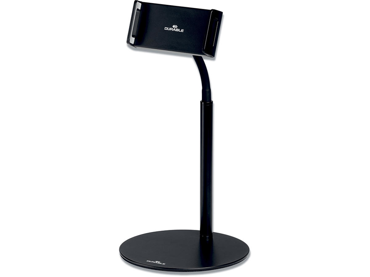 • Bordstativ til tablet eller mobiltelefon, med bøjelig svanehals og kugleled.
