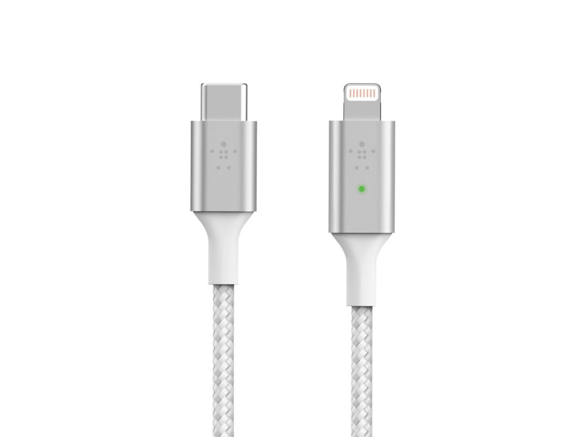 Belkin Smart LED USB-C to Lightning. Stik 1: Lightning, Stik 2: USB C, Produktfarve: Hvid. Certificering: MFi. Antal pr. pakke: 1 stk