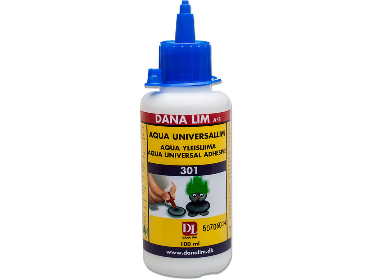 Aqua Universal 301 er en alsidig vandbaseret lim, der giver en let fleksibel og klar limfuge med stor styrke. Anvendes til limning af de fleste porøse og tætte* materialer som sten, glas, metal, keramik, mange plastmaterialer og lakerede overflader, flamingo, træ, læder, grove tekstiler, papir og karton. *Limen hærder ved tørring, og bør derfor kun bruges til mindre limfuger hvis der skal limes på to tætte flader. Anvendelsesområder: Sten Glas Metal Keramik Plast (mange typer) Lakerede overflader Flamingo Træ Læder Tekstiler (grove) Papir Karton