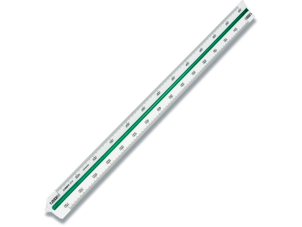 Denne Linex 314 lineal har seks forskellige skalaer og noter i 2 farver.