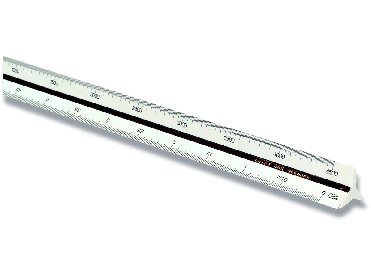 Denne Linex 318 lineal har seks forskellige skalaer og noter i 2 farver.
