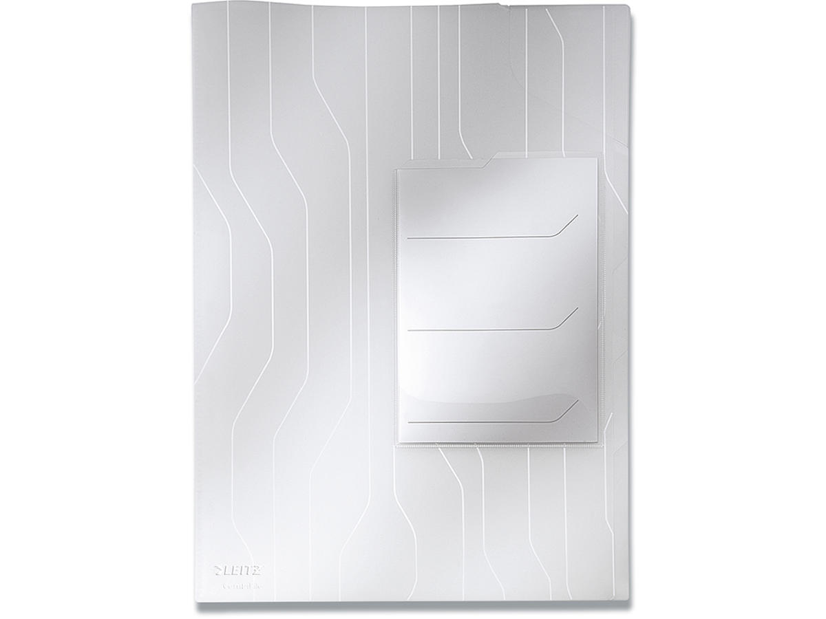 Fleksibel omslag og lomme med unik fold-ud hulkant. Faner giver optimal organisering af dokumenter. Dokumenter opbevares sikkert med hjørnelukning på forsiden. Attraktivt præget design på PP folien.