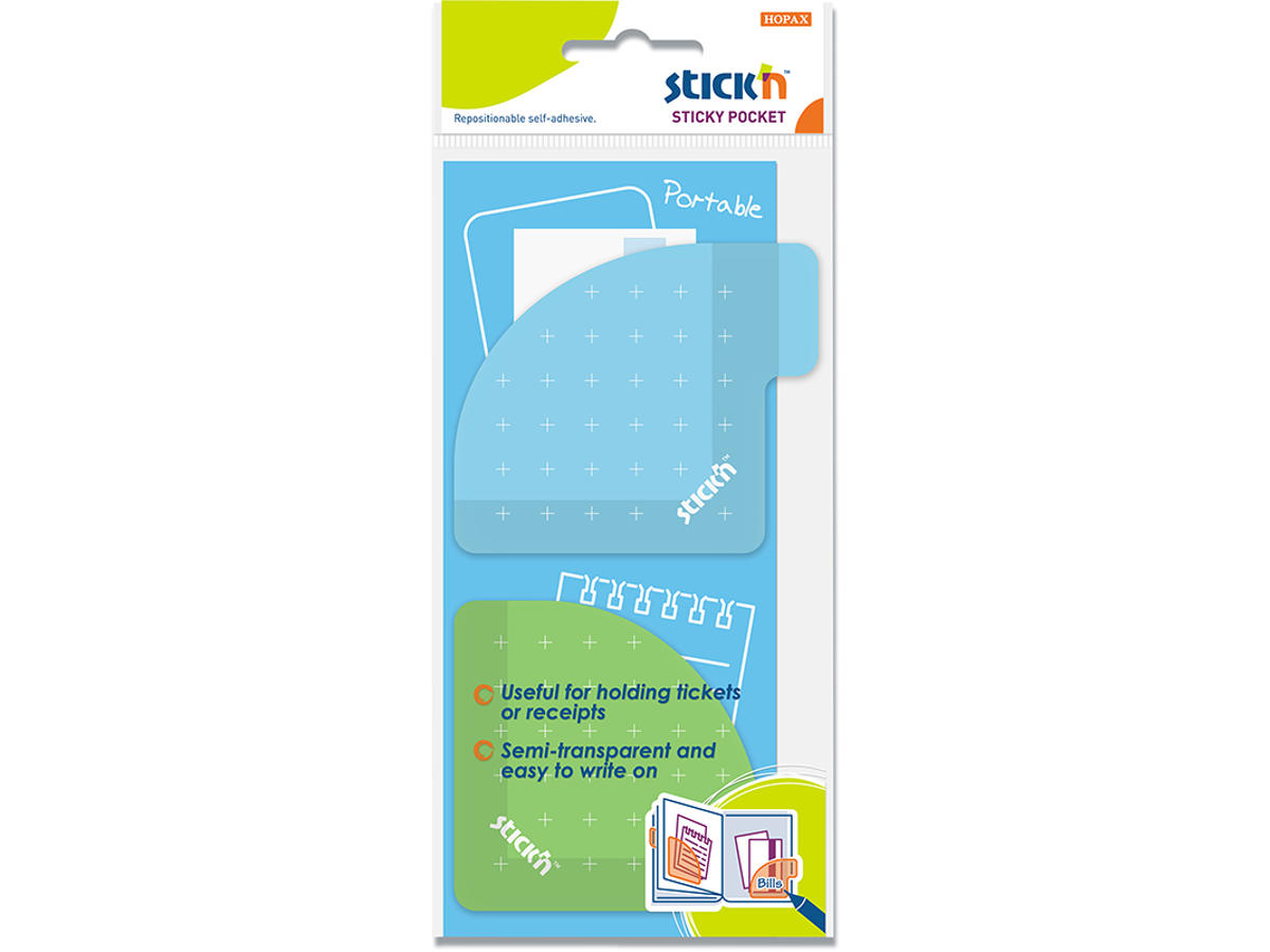 Selvklæbende og flytbar lomme. Velegnet til at holde fx. billetter og kvitteringer. Semi-transparent og let at skrive på.