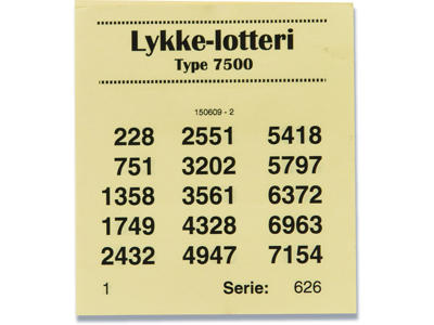 Lykkelotteri, Type 7500, Assorterede farver, 1 blok Lykkelotteri, Type 7500, Assorterede farver, 1 blok