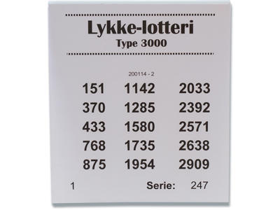 Lykkelotteri, Type 3000, Assorterede farver, 1 blok