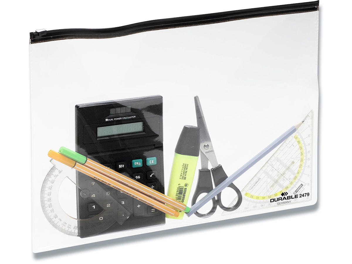 Lynlåspose som lukkes ved at en slider trækkes fra den ene side til den anden. Af kraftig 0,2mm plast. Ideel til praktisk opbevaring af forskellige objekter og dokumenter op til A4 format på fx kontoret, hjemme eller rejser.