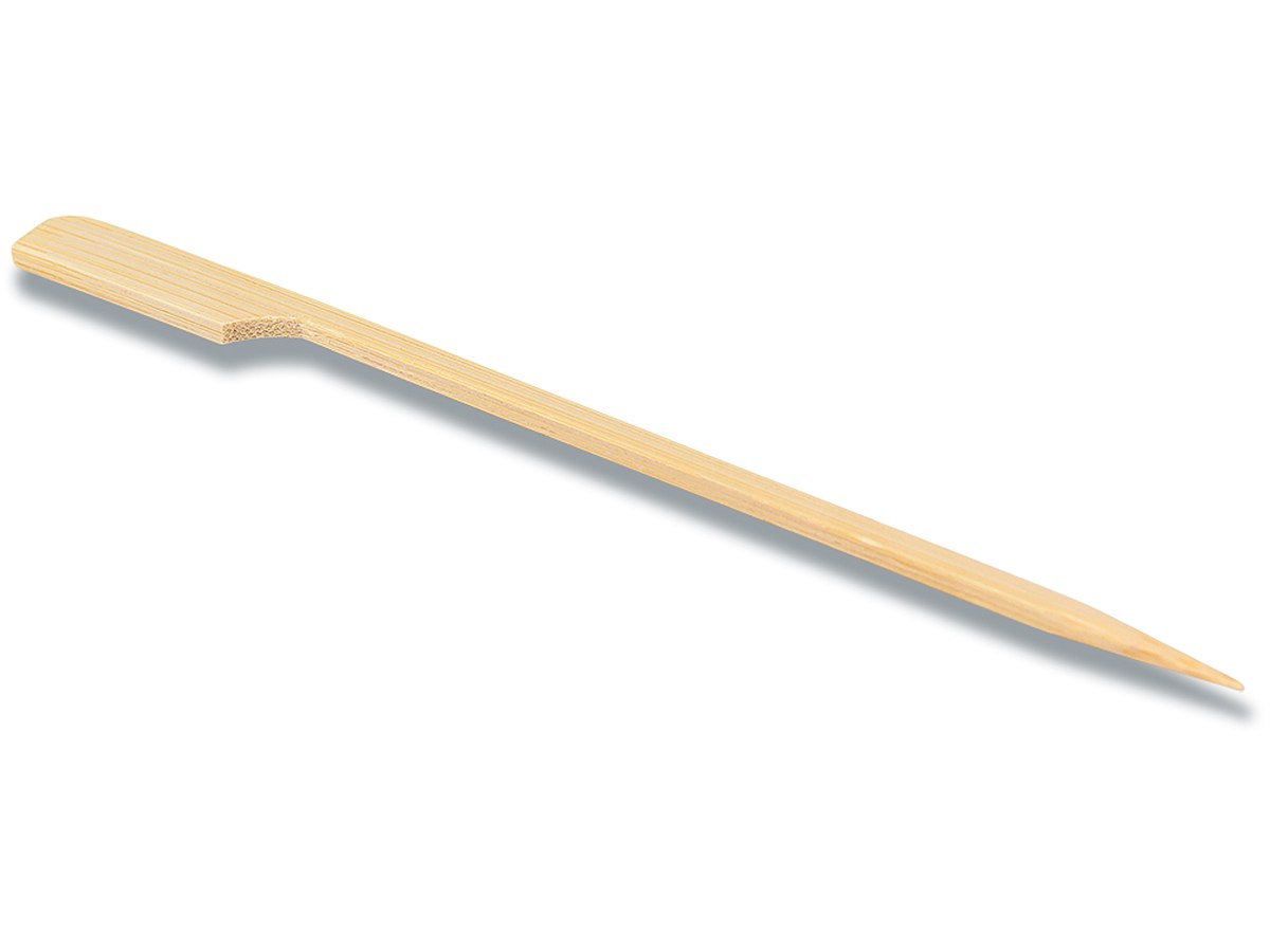 Dette fingermadspyd er lavet af bambus og er derfor ekstremt stabil. Derudover er bambus en hurtigt vedvarende ressource, og derfor meget miljøvenlig. Spyddet er derfor fuldstændig komposterbar og smagløs. Fås i mange længder, fra 7 cm til 25 cm. Derudover giver bambus spyddet et glat og smukt udseende. I slutningen af spyddene er der forsynet med et håndtag, hvilket letter grebet betydeligt. Spyddet er særligt velegnet til catering, cateringfirmaer og arrangementer. Let at håndtere. Meget stabil og miljøvenlig. Afgiver ingen smag.