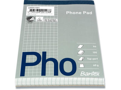Papirblok, Kvadreret, A6, 5 blokke, Bantex Telefonblok