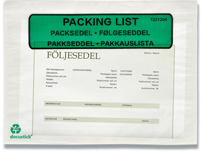 Følgeseddellommer, Uden tryk, C6, 1000 lommer, BNT Docustick Green