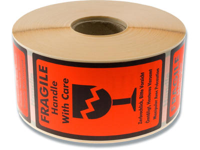 Etiketter, 120x70 mm, Floucerende orange og sort, 1000 etiketter i alt, BNT ''This Way Up''