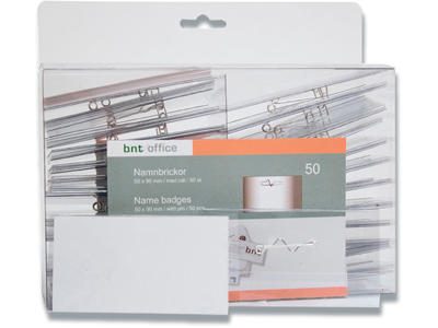 Navneskilt, Med sikkerhedsnål og indstik, 30x70 mm, 50 stk, BNT Office