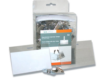Navneskilt, Med klemme og indstik, 50x90 mm, 1 stk, BNT Office