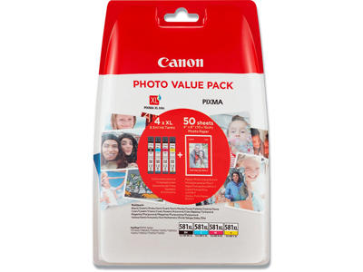 Blækpatroner, 4 stk, 4 farver, Black-sort, Canon CLI-581XXL
