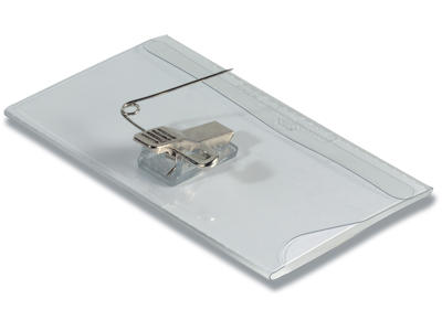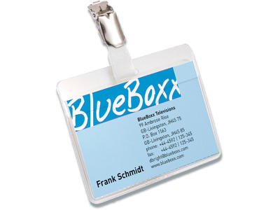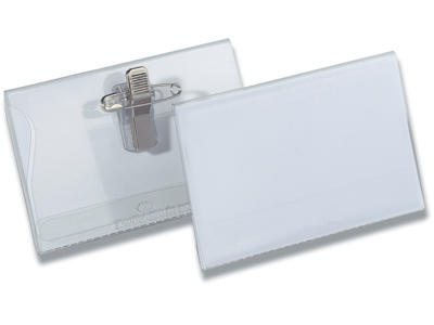 Navneskilt, Med sikkerhedsnål og indstik, 75x40 mm, 100 stk, Durable