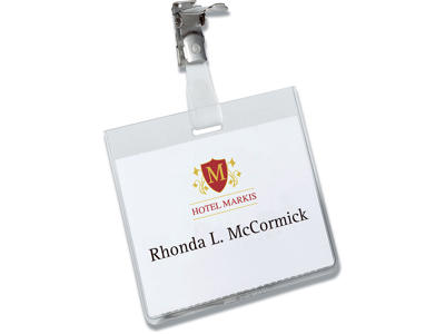 Navneskilt, Med stropklemme og indstik, 60x90 mm, 25 stk, Durable
