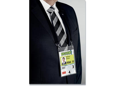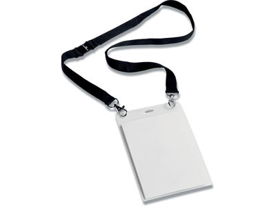 Navneskilt, Med tekstil halsrem med 2 karabinhager og sikkerhe, A6 - 105x148 mm, 10 stk, Durable