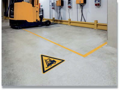 Gulvmarkering, Påbudsskilt, ''Hold øje med trucks'', Gul, Durable